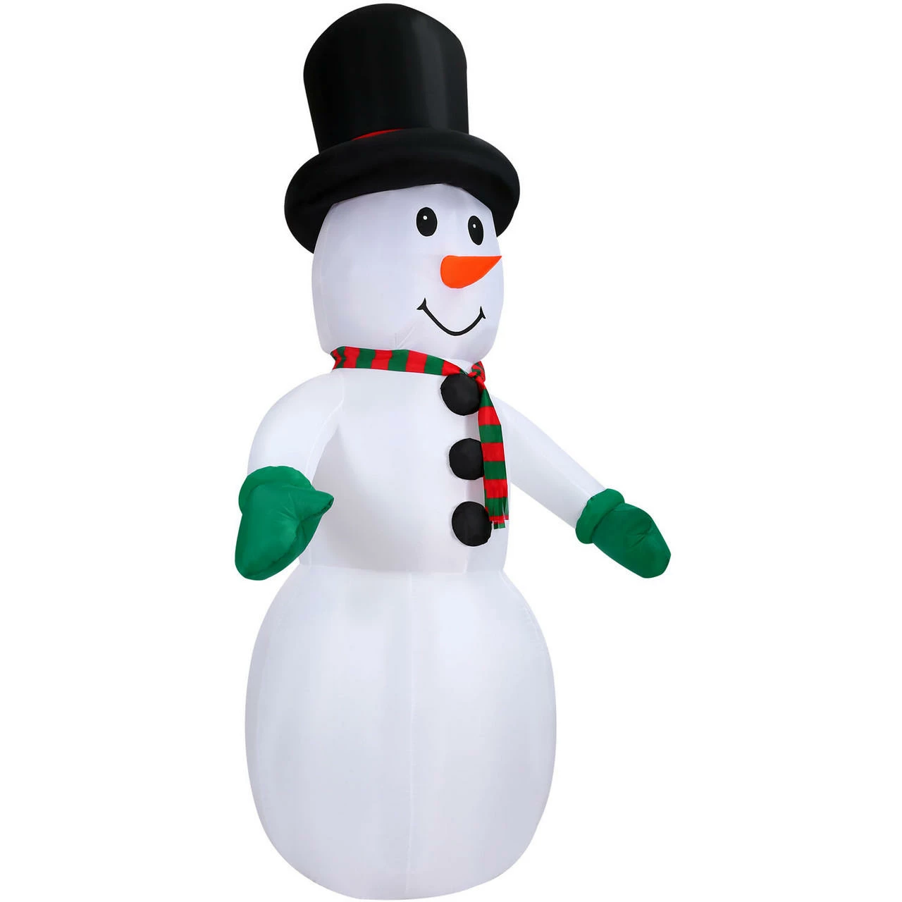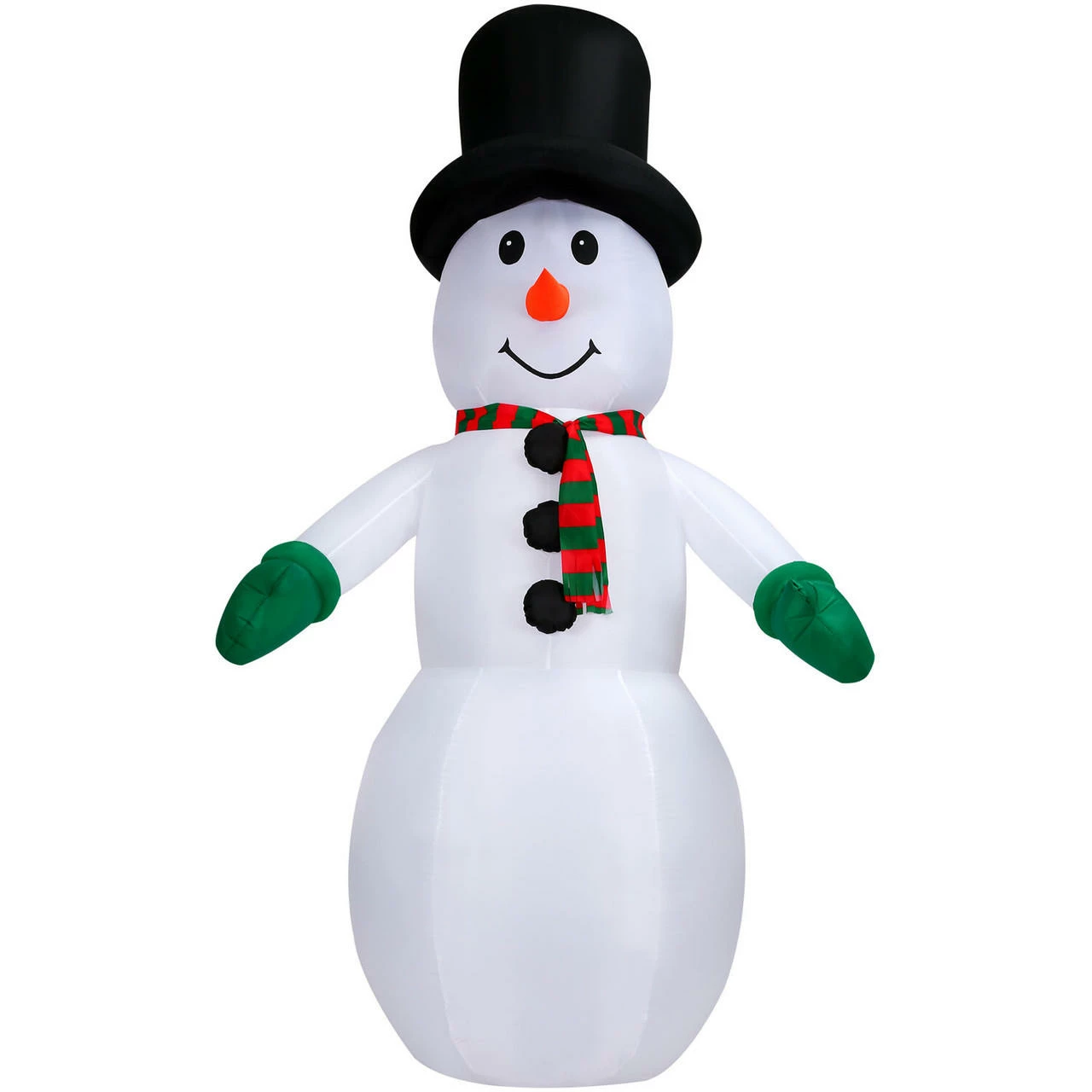 - 10-ft. Pre-Lit Inflatable Snowman illuminates day and night with 3 internal white LED lights