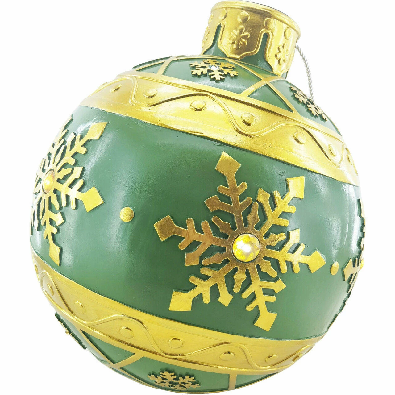 Deck your halls this holiday season with oversized resin decor from Christmas Time. Perfect for either indoor or covered outdoor use, our collection of resin statues will help you create a festive display that’s sure to impress friends, family, and carolers alike. Each intricately detailed item is crafted from weather-resistant resin then brightly hand-painted. Our beautiful bulb ornament, featuring snowflakes and festive scrollwork, stands 18 inches tall and is prelit with 7 gold LED lights. This festive bejeweled ornament will add a special glow to your porch, entryway, fireplace hearth, or near the tree. For decorations that celebrate the magic of Christmas, count on quality products from Christmas Time.