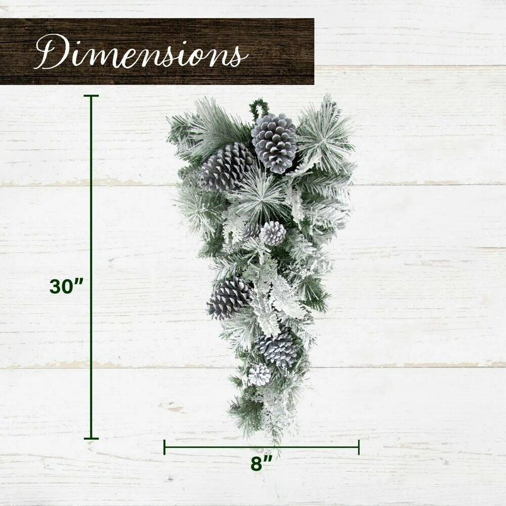 - Artificial snow-flocked teardrop door hanging