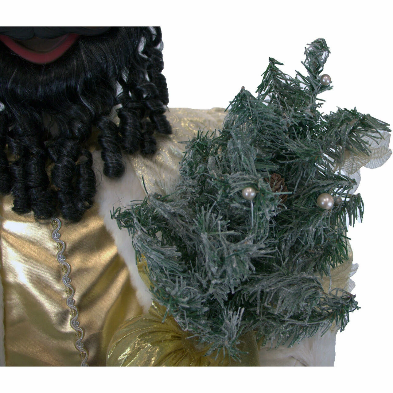 - 36-in. Music and Motion African American Santa moves his head and arms while holding a lighted Christmas tree