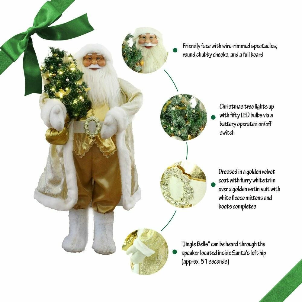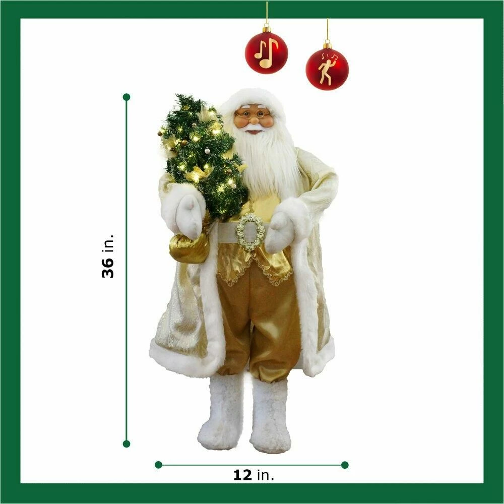 - 36-in. musical Santa with lighted Christmas tree, moves his head and arms