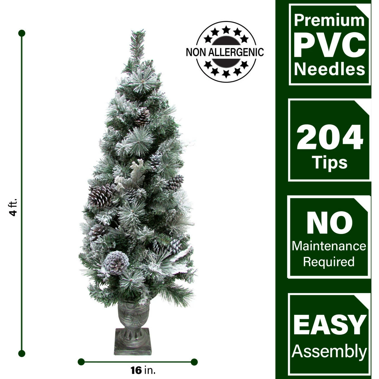 Spruce up your home this holiday season with the rustic appeal of an artificial potted tree from Fraser Hill Farm. This tree features luscious foliage dusted with snow-like flocking and is made with quality, maintenance-free materials that will last season after season. Place on your porch, around the fireplace, or in the corner of a room for a delightful Christmas accent. The snowy green PVC branches display oversized pine cones scattered throughout. A decorative pot completes the look for a lifelike piece that is timeless. Simply unbox, fluff the branches, and enjoy the beauty and long-term benefits that come from owning an artificial design from Fraser Hill Farm.