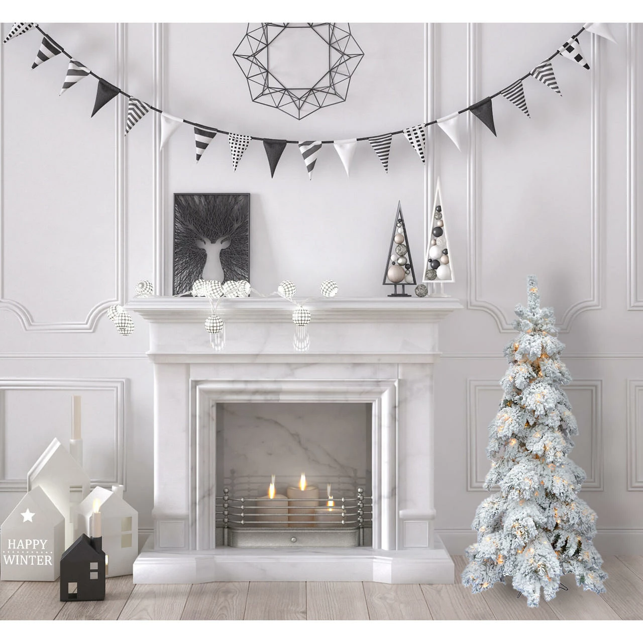 The 4-ft. Elk Mountain flocked artificial Christmas tree from Fraser Hill Farm features a slim silhouette with extremely lifelike foliage and all-metal hinged branch construction. A heavily flocked finish was designed to resemble freshly fallen snow that is true to season and produces a natural effect. Fraser Hill Farm produces the most realistic trees on the market, featuring all the long-term benefits that come with owning an artificial tree. The tree needles are constructed out of non-allergenic and flame-retardant materials. These details create the look of a natural tree and require no maintenance. Simply unfold out of storage, fluff and decorate! This model is prestrung with 100 warm white LED bulbs that are evenly distributed and hold to frame. Designed to last, the Elk Mountain tree is sure to provide more convenience and ease to your holiday season, year after year.