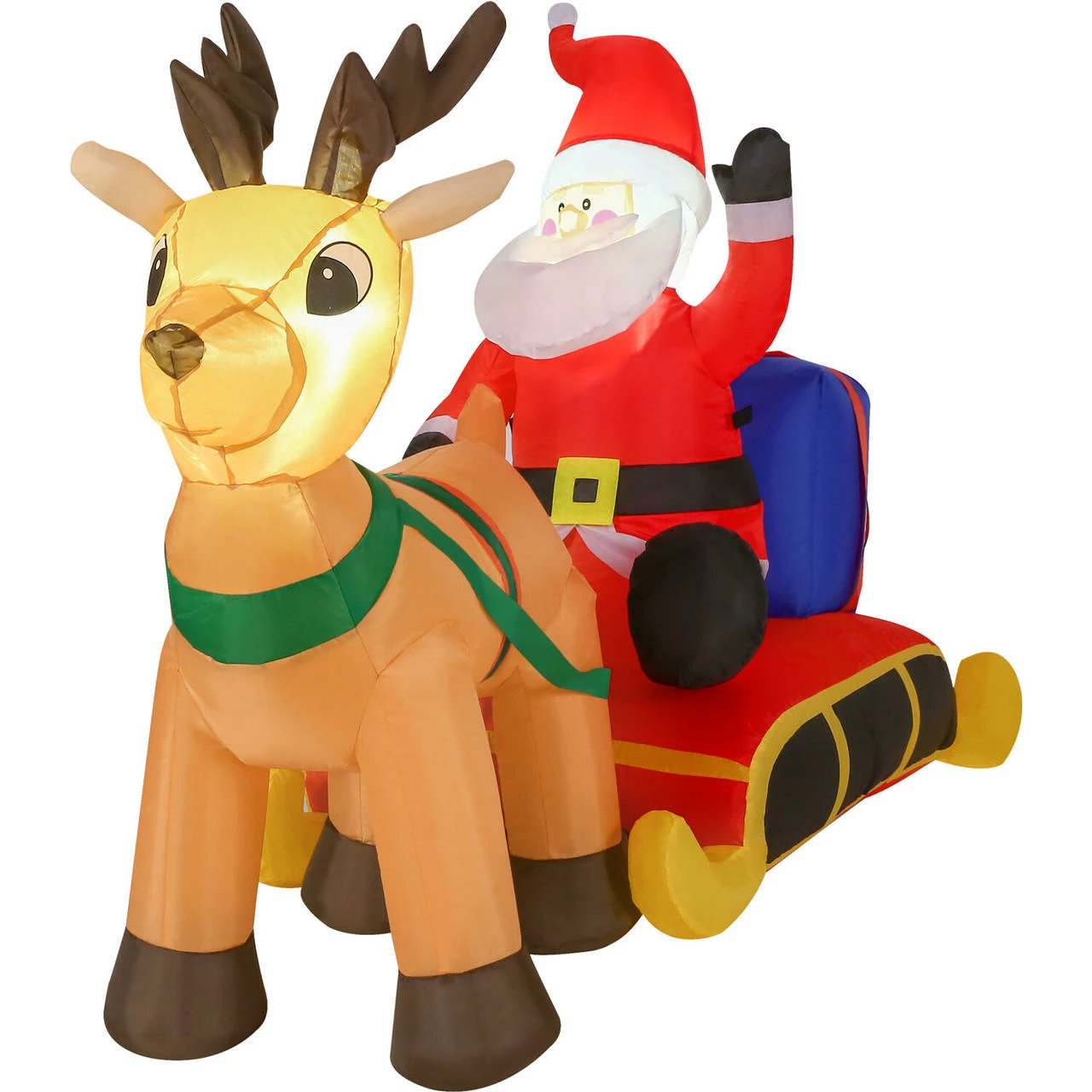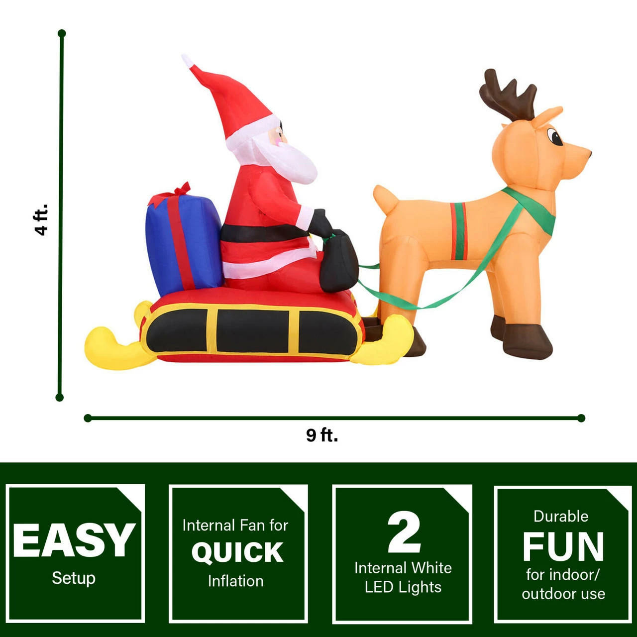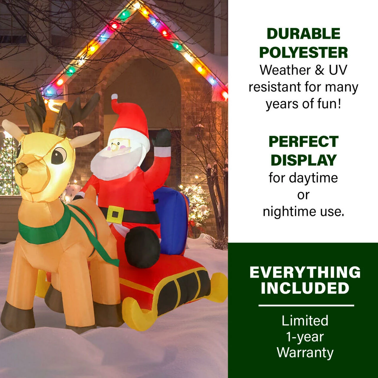 - 4-ft.Tall Pre-Lit Inflatable Santa in Sleigh illuminates day and night with 2 internal white LED lights