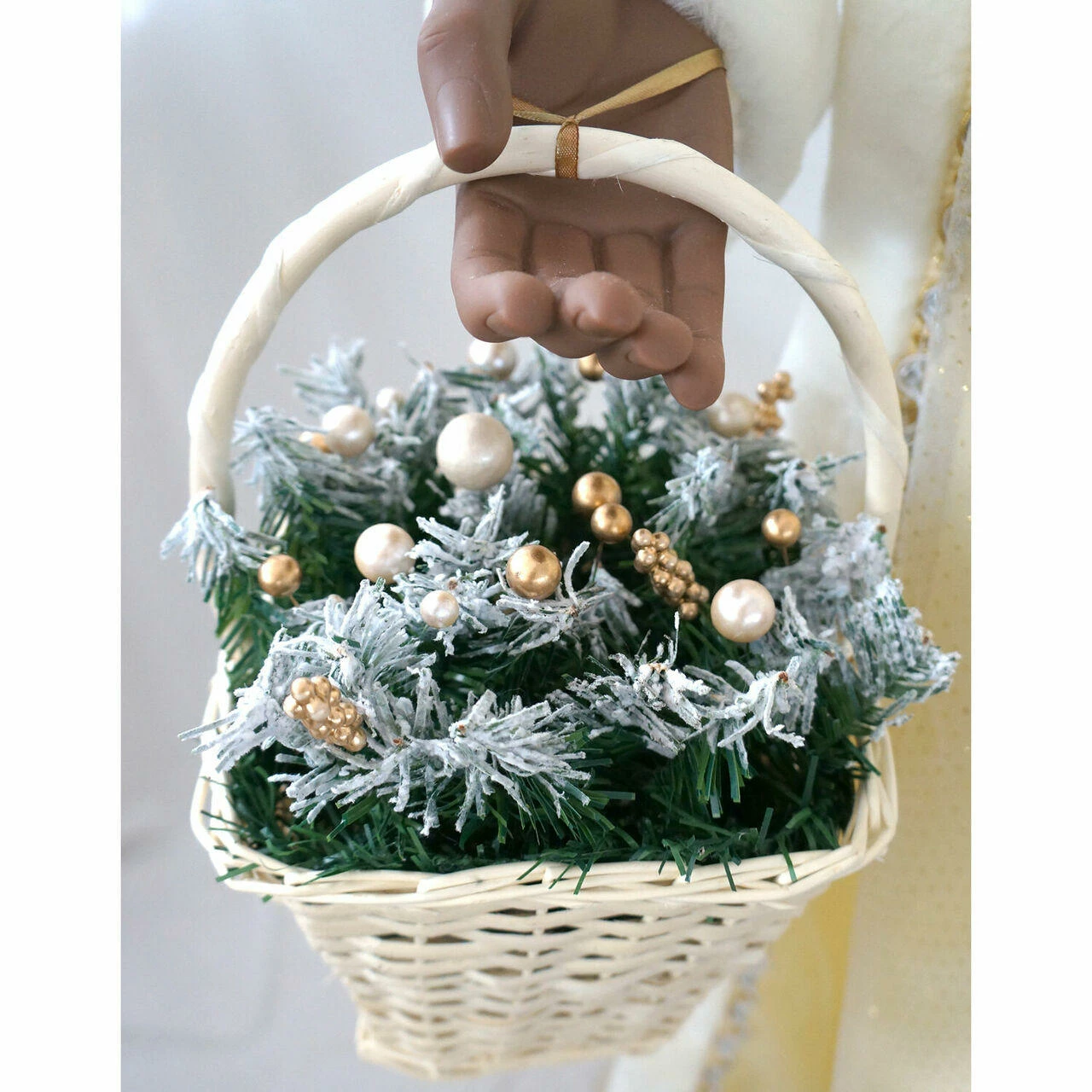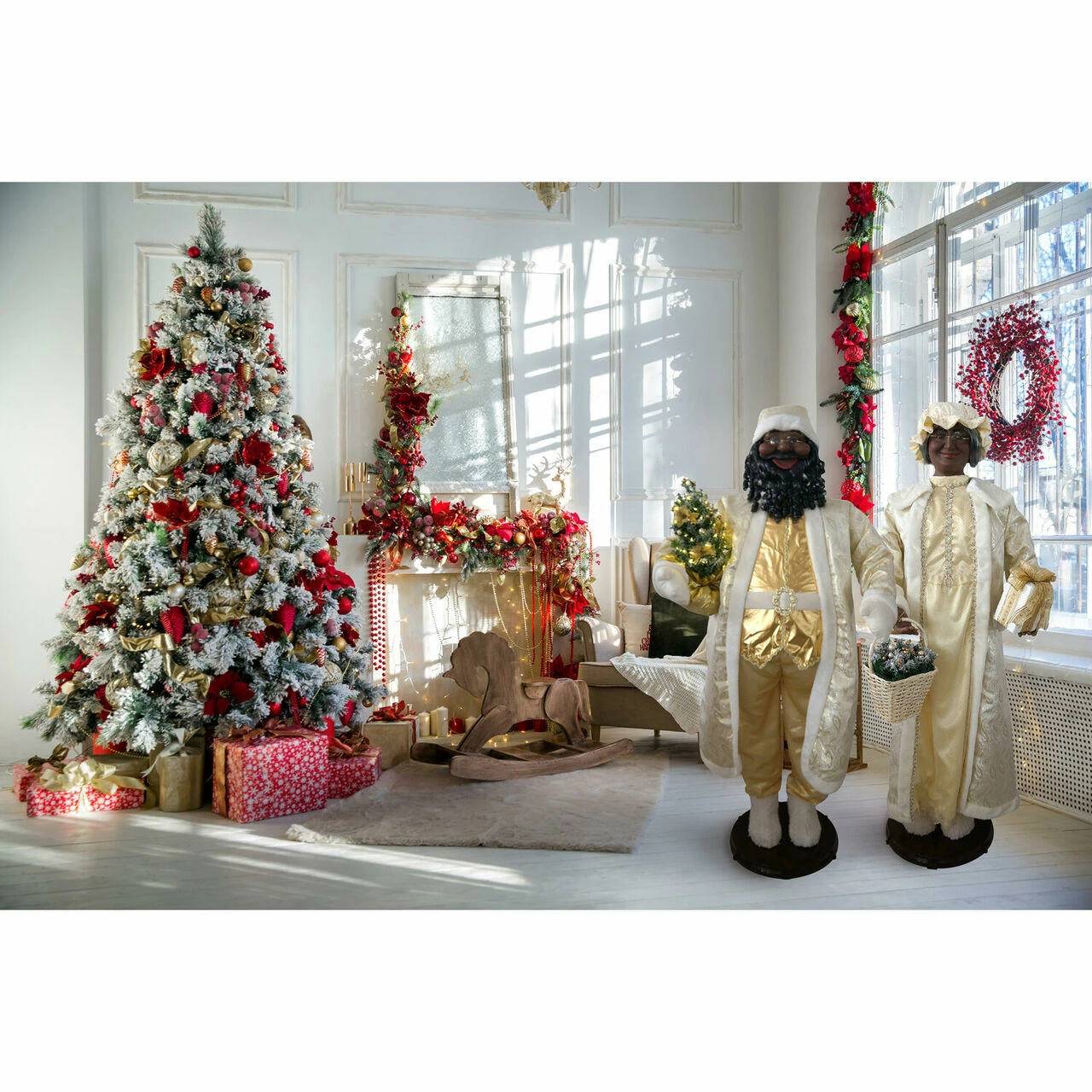 Who’s helping Santa and dancing along the way? Mrs. Claus, that’s who! Our African American dancing Mrs. Claus, from Fraser Hill Farm, will dance right into your heart as she helps you greet your family, guests, or customers. Standing 58 inches tall with a basket full of greenery and a gift to put under the tree, she will be a delightful addition to your holiday decor in any home, office, or store. When motion is detected, she will move her arms and sway her body to the music. Dressed in golden holiday splendor and white fleece boots, her friendly face and warm smile will add an elegant touch to your holiday decor. Place her in the foyer, near the fireplace, or next to the family Christmas tree. Better yet, pair her with our African American dancing Santa in his matching suit for an extra special display (sold separately model # FASC058-2GL1-AA).
