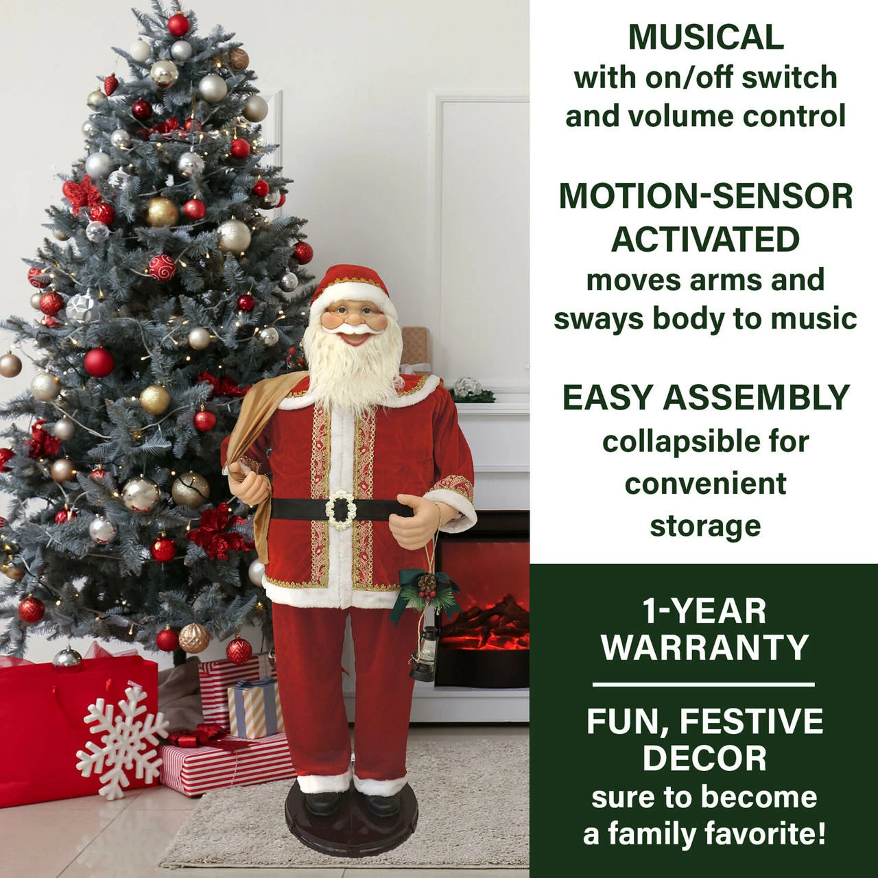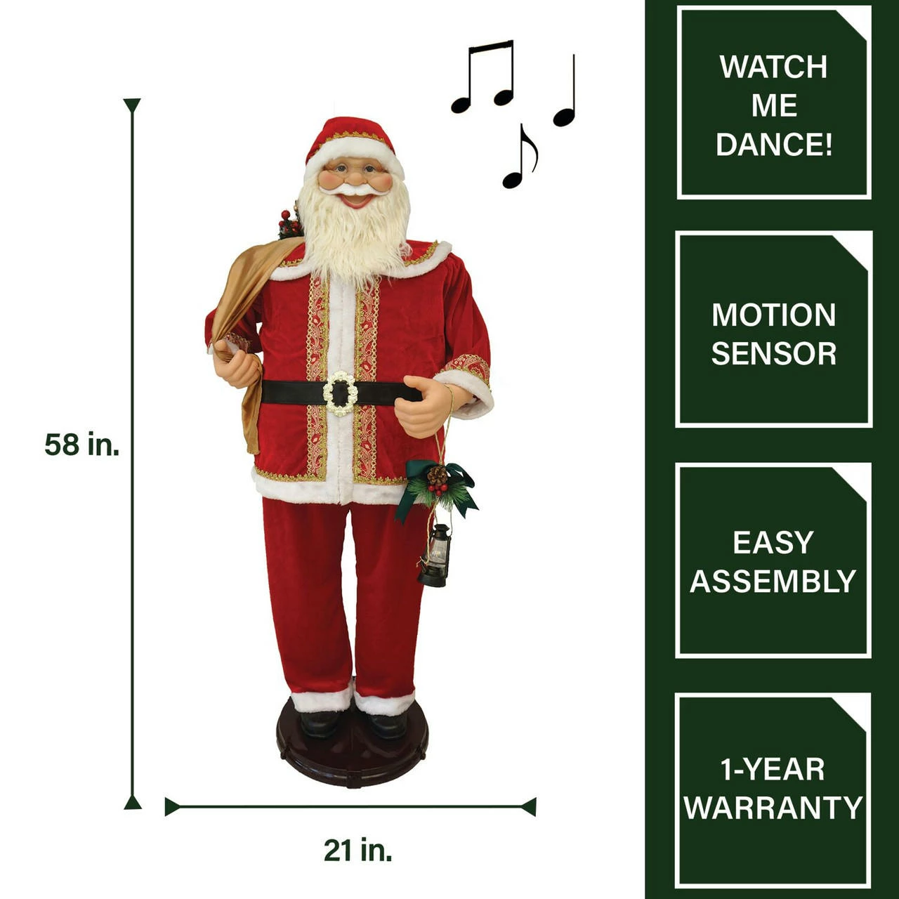 - 58-in. motion-activated dancing Santa carries his toy sack and a faux lantern