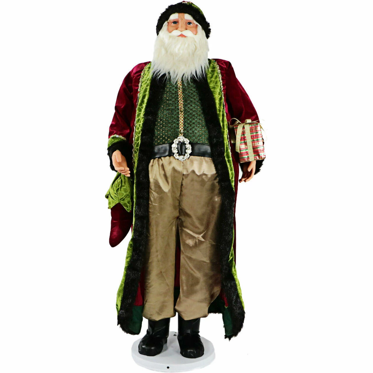 - 58-in. motion-activated Dancing Santa is wearing a lavishly trimmed robe and carrying a wrapped gift and velvet stocking