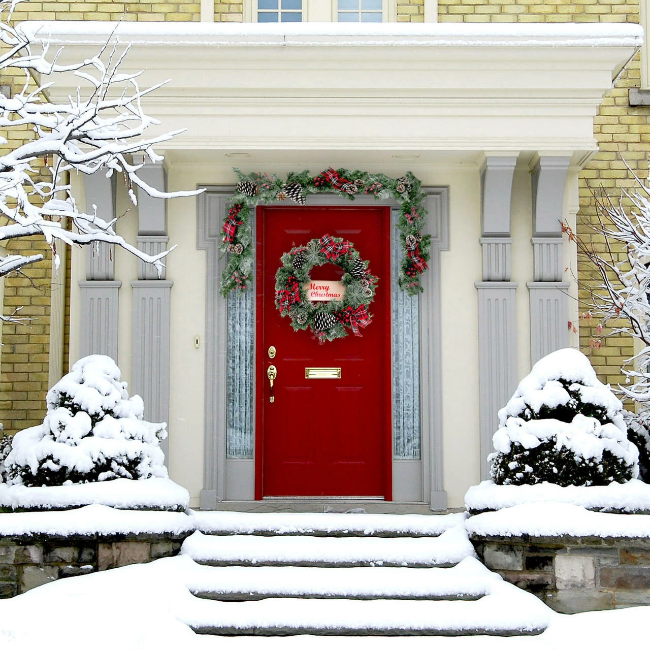 Spruce up your holiday decor with a 6-foot artificial garland from Fraser Hill Farm. Whether you deck the halls indoors or outdoors, invest in quality decor that will last year after year. This garland features a mix of realistic pine branches with oversized pinecones, red plaid bows and red berries scattered throughout. A light dusting of flocked snow glistens among the wispy branches and accentuates the details beautifully. This garland is coveted for its delightful arrangement of realistic branches, rustic charm, and festive accents to complete the look. Wrap this garland around a railing, drape it over a mantel or anywhere else you see fit and spread holiday cheer that will last from one season to the next.