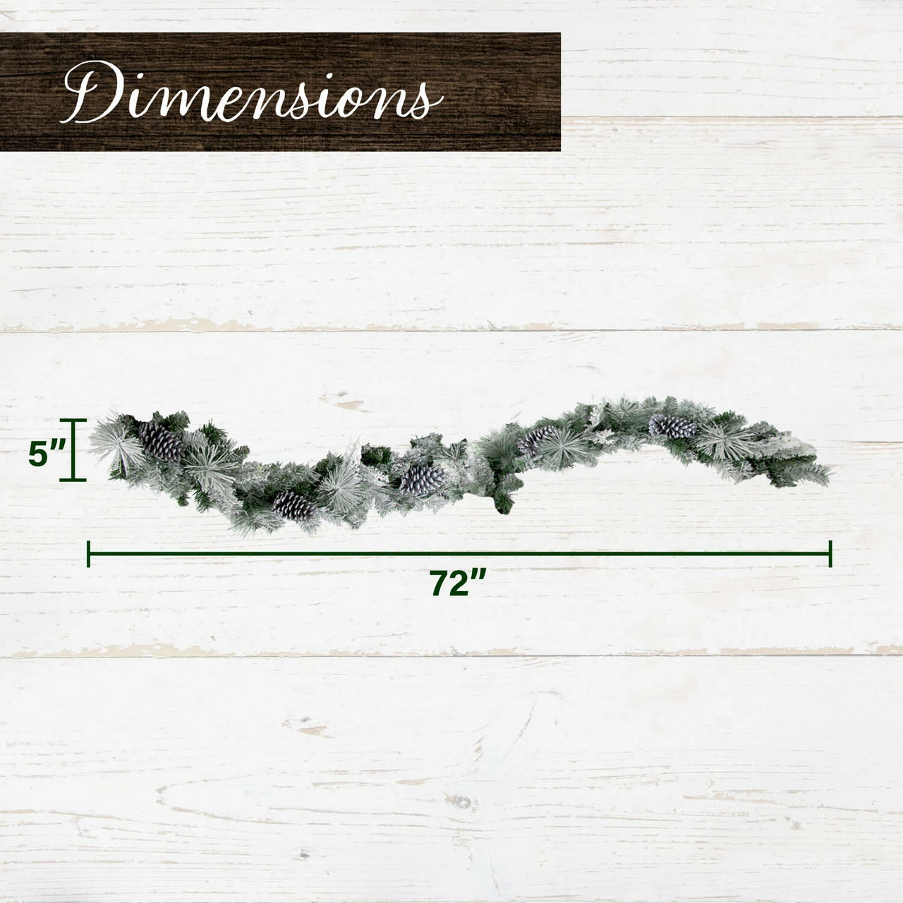 Spruce up your holiday decor with a 6-foot artificial garland from Fraser Hill Farm. Whether you deck the halls indoors or outdoors, invest in quality decor that will last year after year. This garland features a mix of realistic pine branches with oversized pine cones scattered throughout. A dusting of flocked snow glistens among the wispy branches and accentuates the pine cones beautifully. The arrangement creates a complete look while evoking subtle feelings of Christmas. This garland is coveted for its delightful arrangement of realistic branches, rustic charm, and festive accents to complete the look. Wrap this garland around a railing, drape it over a mantel or anywhere else you see fit and spread holiday cheer that will last from one season to the next.