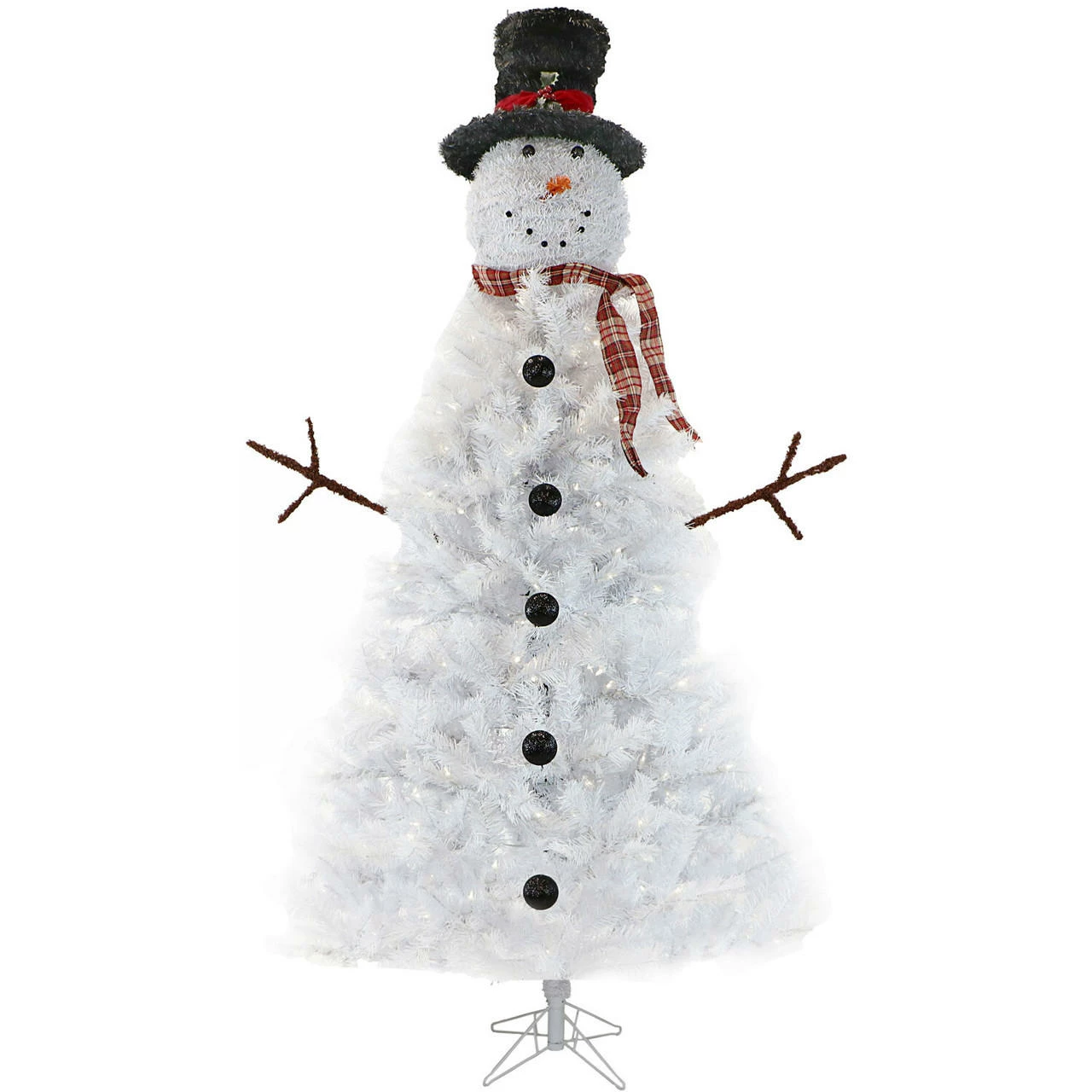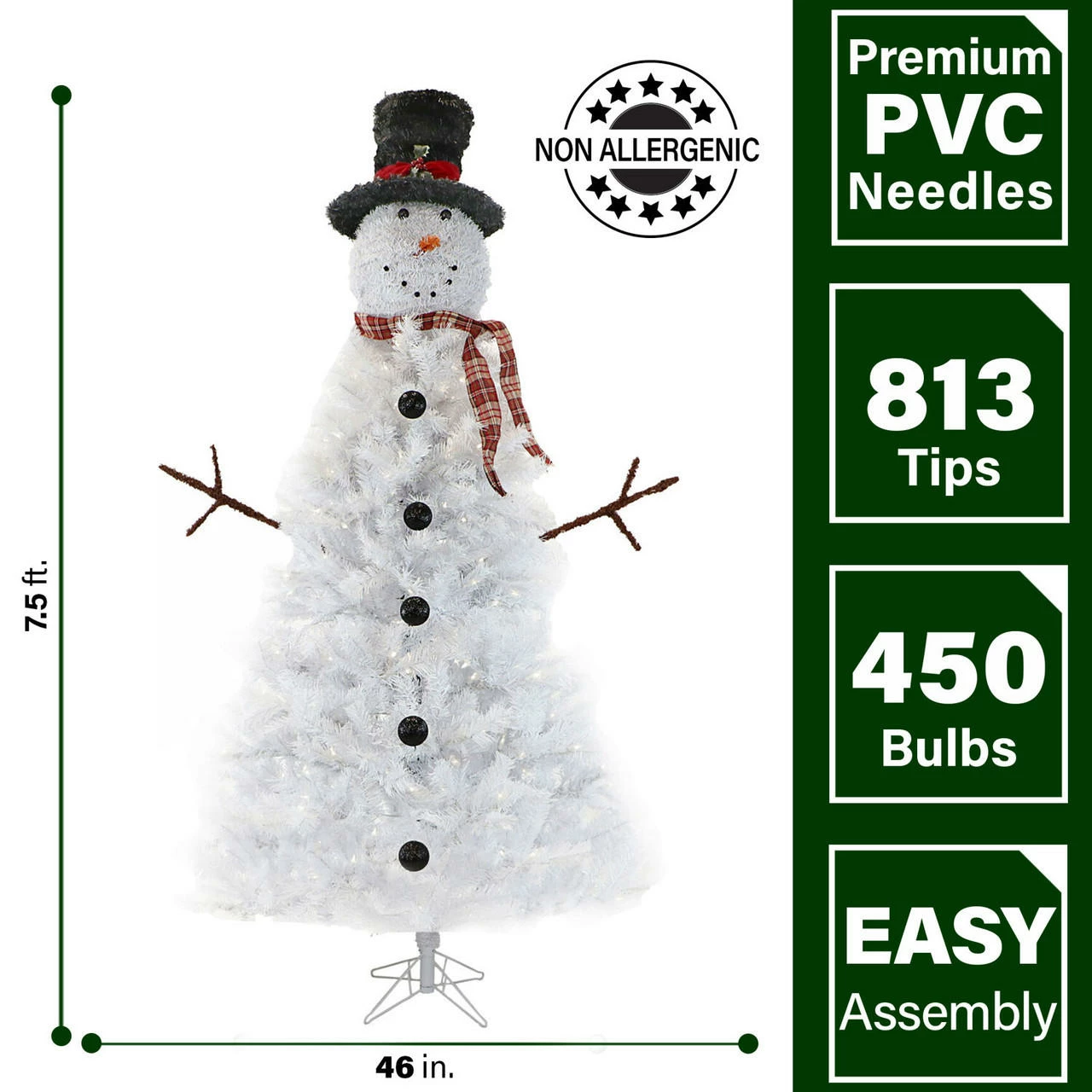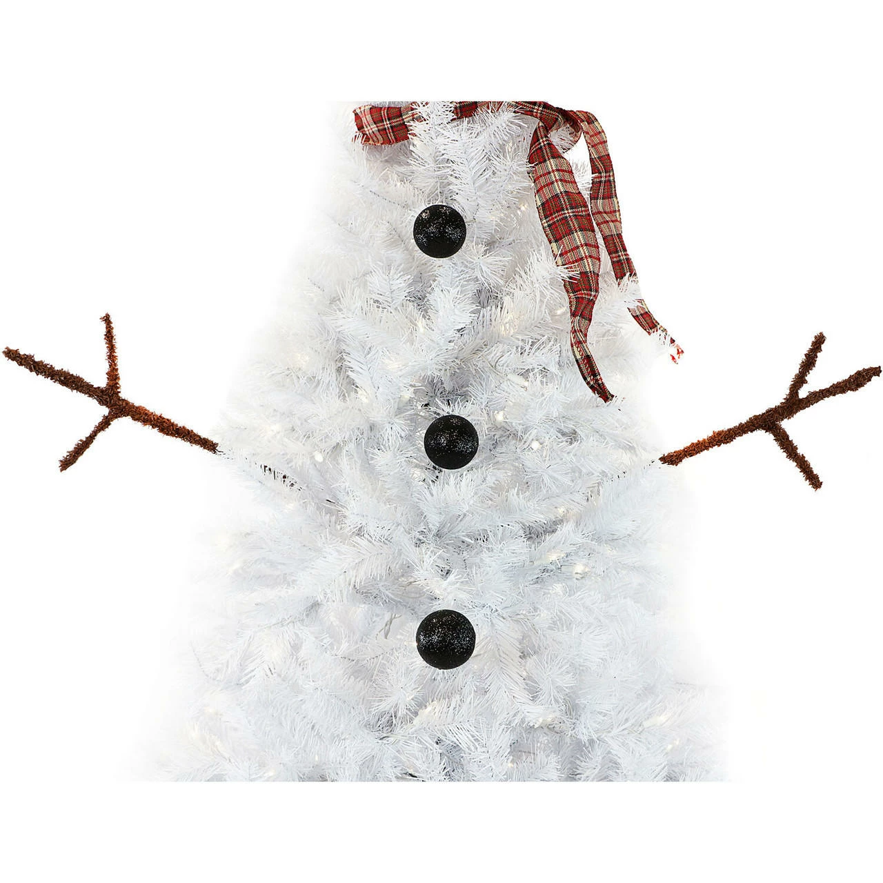 Make Christmas extra fun with Fraser Hill Farm’s 7.5-ft. Snowman themed artificial Christmas tree. Featuring a traditional silhouette, lifelike white foliage, and an all-metal hinged branch construction for strength and durability. Each model is specially crafted using the finest materials to not only look realistic, but to provide you with many seasons of use and enjoyment as well. The tree needles are constructed out of non-allergenic and flame-retardant materials then painted white. A cute snowman head tops the tree with arms and buttons completing the look on the bottom. White LED lights make a statement throughout the tree and take the festivity to the next level. With Fraser Hill Farm, enjoy all the long-term benefits that come with owning an artificial tree. Imagine never having to shop, chop, and pay for another natural tree again. With the Snowman Christmas tree, simply unfold out of storage and decorate!