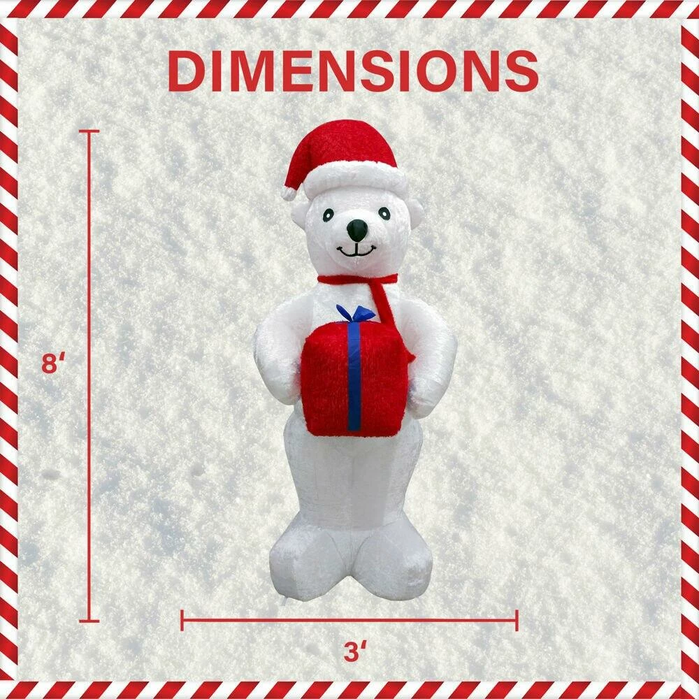 - Plush Polar Bear Holding a Gift – airblown inflatable illuminates the night with 3 internal LED lights