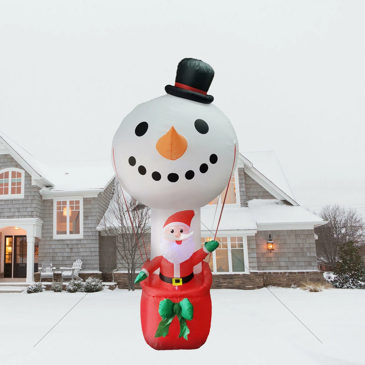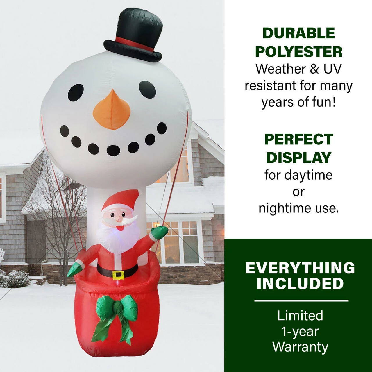 - Fraser Hill Farm 9-Ft. Multi-Color Pre-Lit Inflatable Santa in Snowman Hot Air Balloon- airblown inflatable illuminates day and night with 6 internal RGB colorful lights