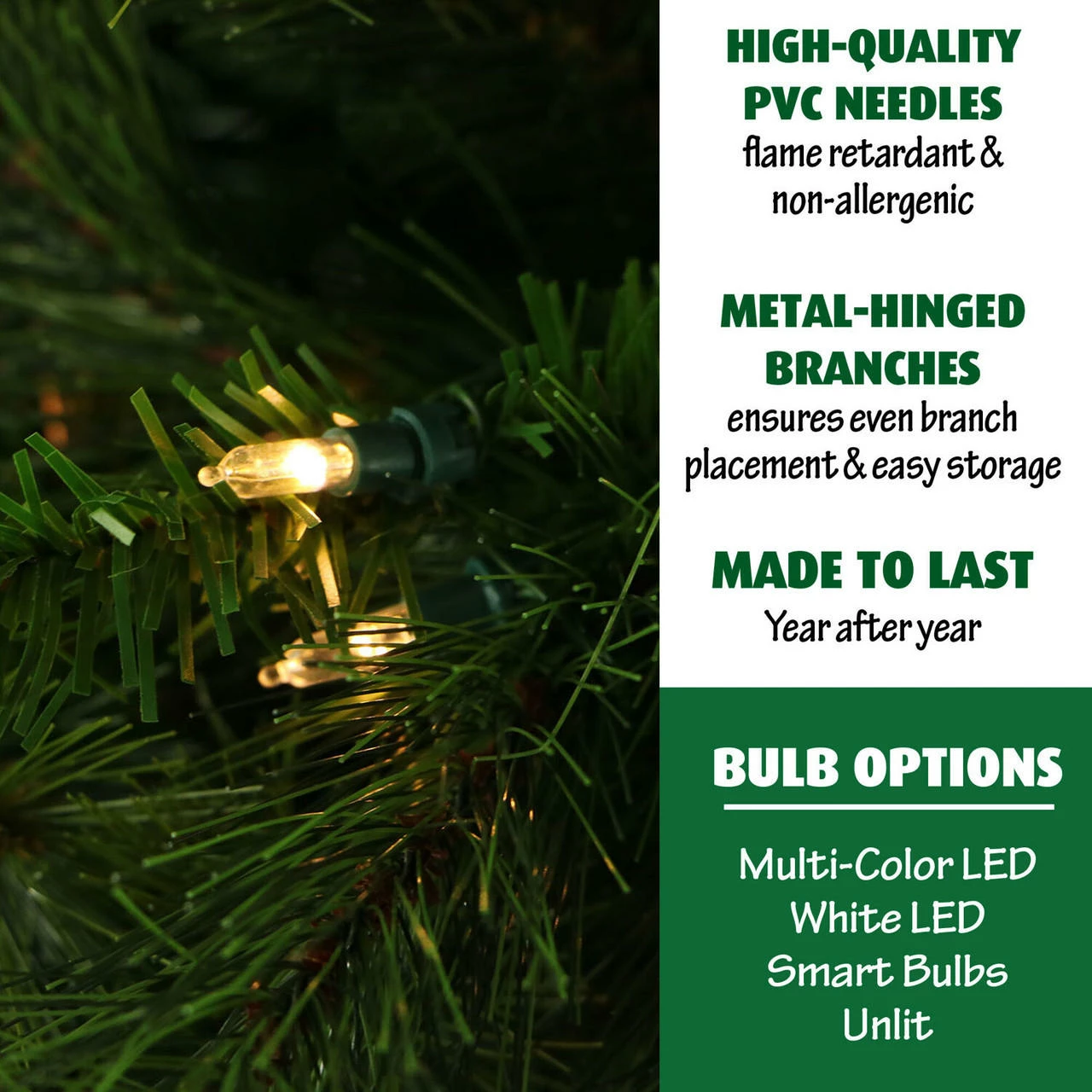This Canyon Pine features a traditional trimmed silhouette with extremely lifelike foliage and all-metal hinged branch construction. We produce the most realistic trees in the market, featuring all the long-term benefits that come with owning an artificial tree. Imagine never having to shop, chop, and pay for another natural tree again. With the Canyon Pine, simply unfold out of storage and decorate! This model is not prestrung with lights so you have the freedom to use your own. The tree needles are constructed out of non-allergenic and flame-retardant materials then painted multiple hues of green so no two are exactly alike. These details create the look of a natural tree and require less maintenance. Designed to last, this Canyon Pine tree is sure to provide more convenience and ease to your holiday season, year after year.
