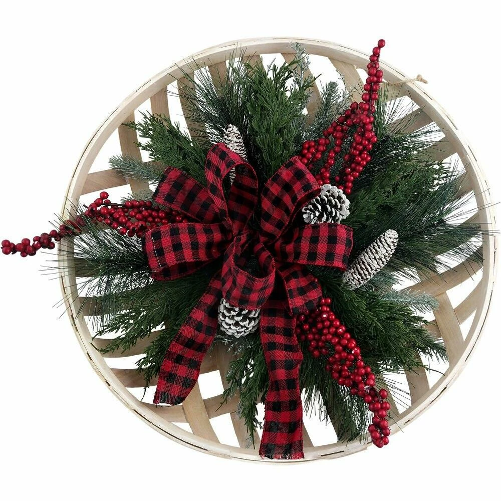 - Unique decor set includes a 20-inch tobacco basket-top wreath, a JOY block set, a Fresh Farm Christmas tree sign, a buffalo plaid snowflake and reindeer plaque set, plus a truck and wagon overflowing with bottle brush pine trees