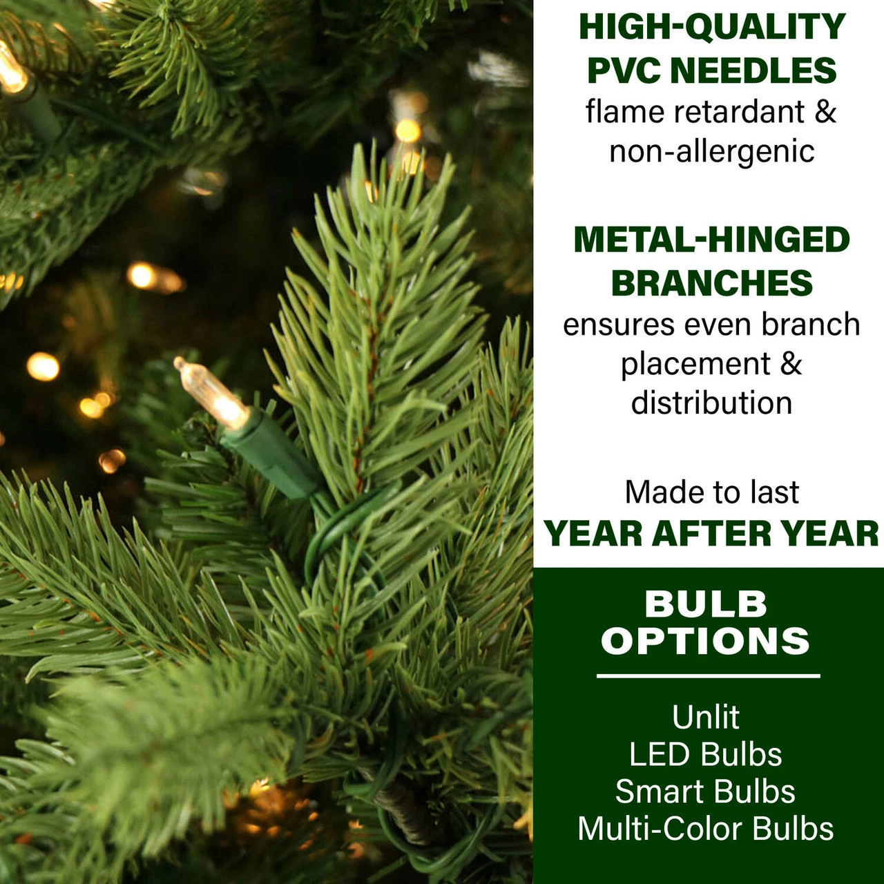 Our Foxtail Pine model features a natural-shaped silhouette with extremely lifelike foliage, extended branch length and all-metal hinged branch construction. Fraser Hill Farm produces the most realistic trees in the market, featuring all the long-term benefits that come with owning an artificial tree. Imagine never having to shop, chop, and pay for another natural tree again. With the Foxtail Pine, simply unfold out of storage and decorate! This model is not prestrung with lights so you have the freedom to use your own. The needles are made out of high-quality PVC material and are both flame-retardant and non-allergenic. These needles are painted multiple hues of green so not all are alike and together produce a natural effect. Designed to last, this Foxtail Pine tree is sure to provide more convenience and ease to your holiday season, year after year.