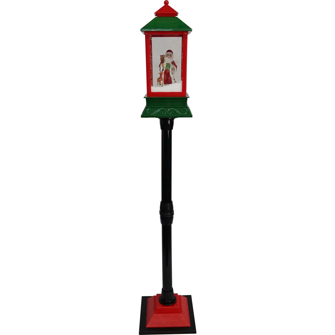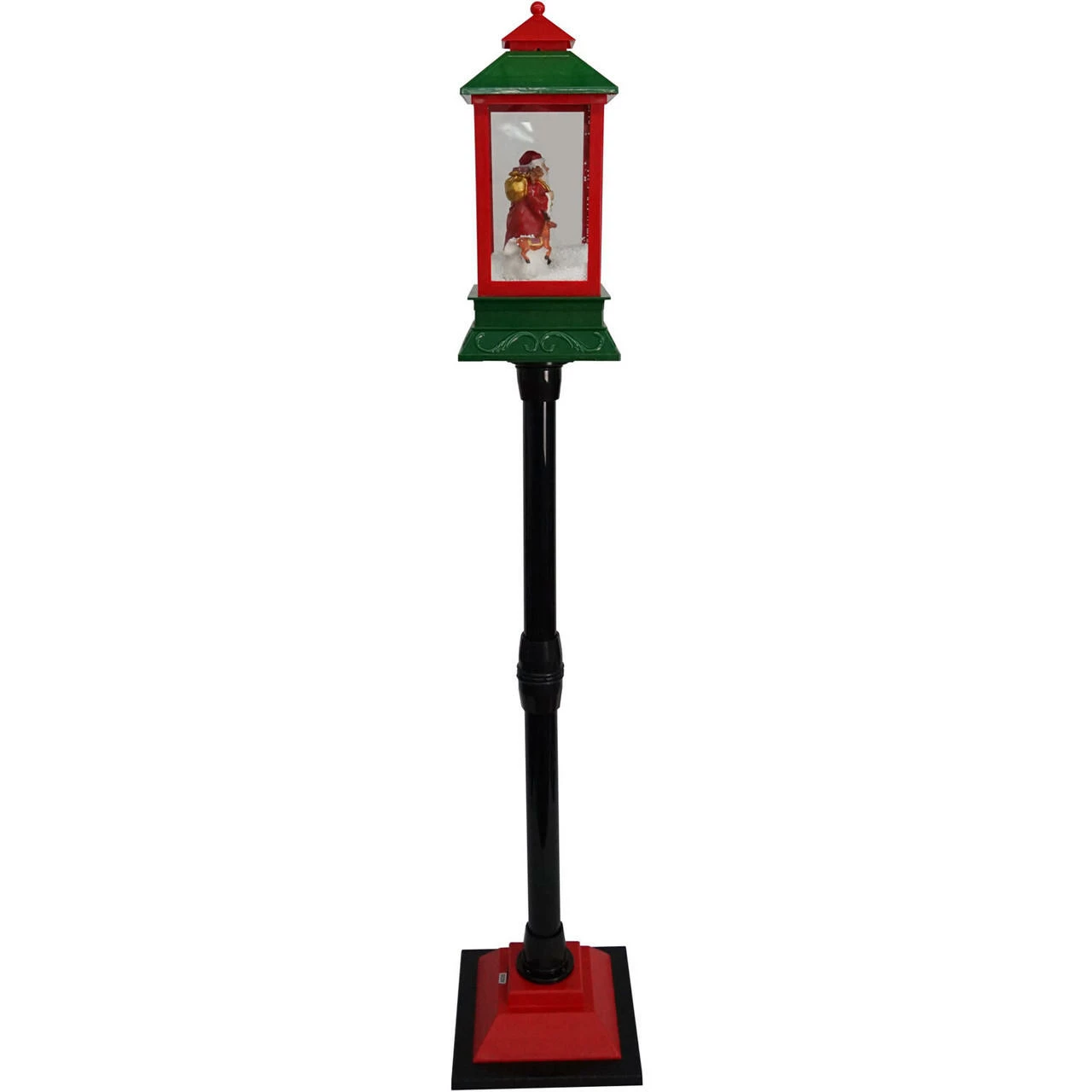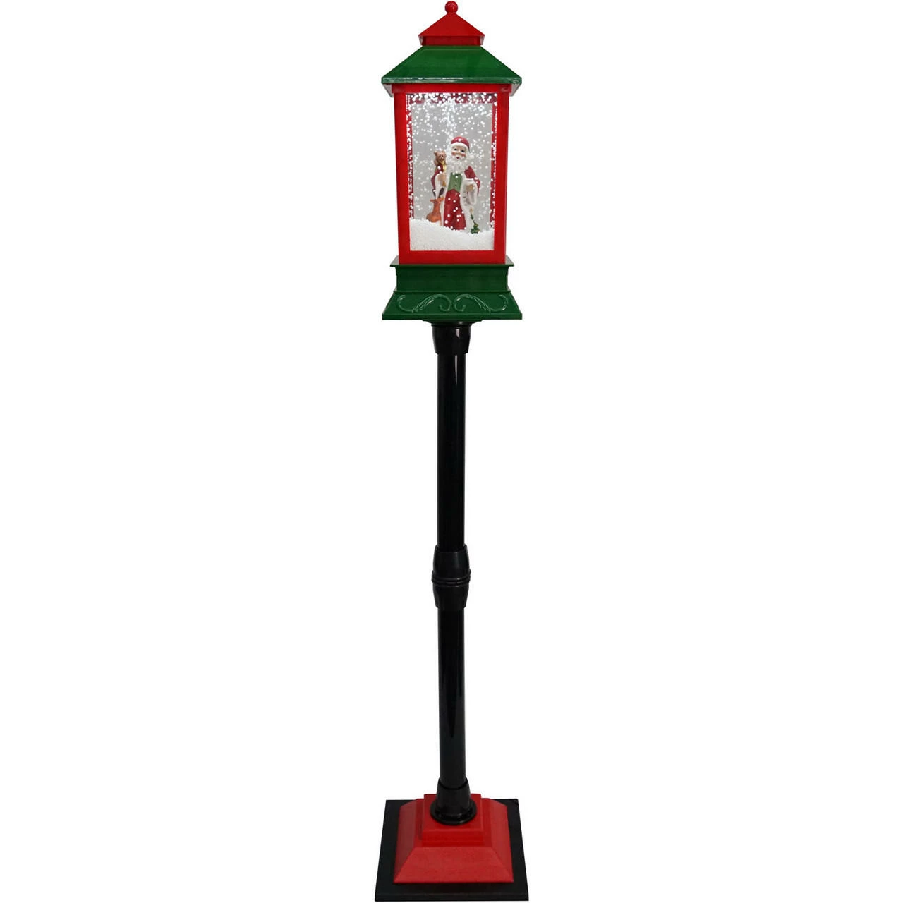 Capture the magic of falling snow with this 49-inch musical mini street lamp from the Let It Snow series by Fraser Hill Farm, where all products produce flurries of faux snow that fall over various holiday scenes. Sparkling white LED lights illuminate the polyfoam beads cascading over Santa Claus. Three popular Christmas tunes (Jingle Bells, We Wish You a Merry Christmas, and Oh! Christmas Tree) play randomly while the artificial snow flutters inside the lantern. You can enjoy the lights and snowfall with or without music. This unique snowy lamp post will help create a magical winter wonderland on your covered porch near the doorway or anywhere inside your beautiful home. Plug it in, and let it snow, let it snow, let it snow!
