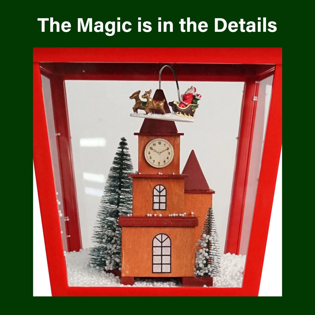 - Faux-snow cascades over Santa flying in his sleigh, creating a magical winter wonderland