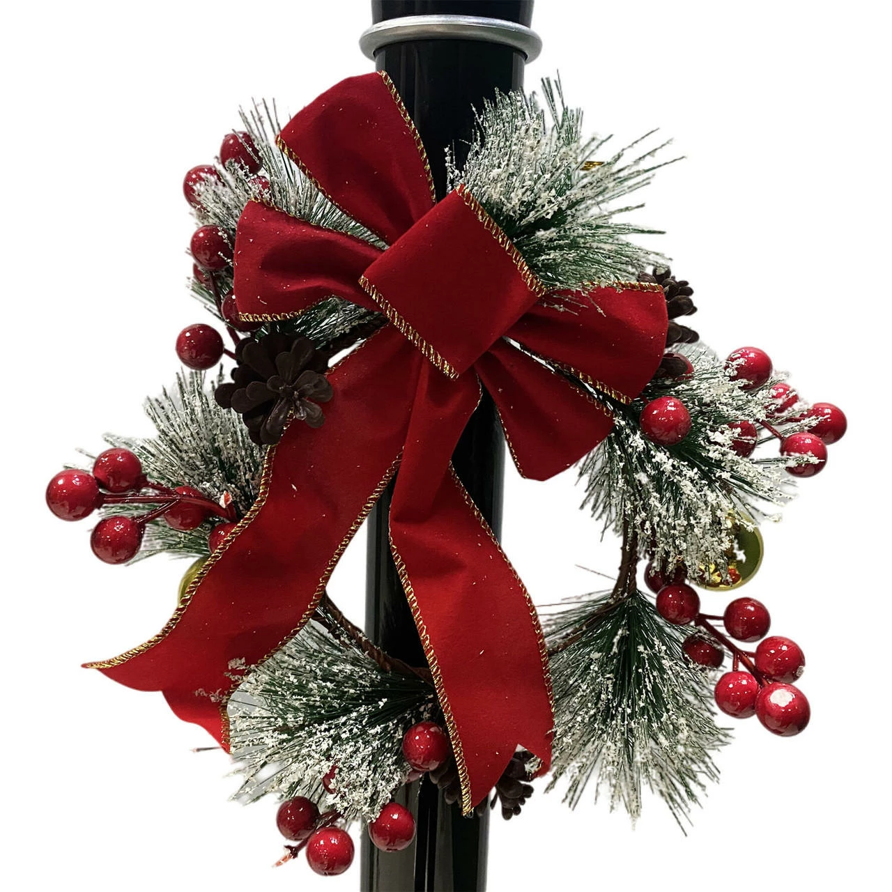 - Includes Merry Christmas sign, Let it Snow sign, berry-covered wreath, and classic red bow