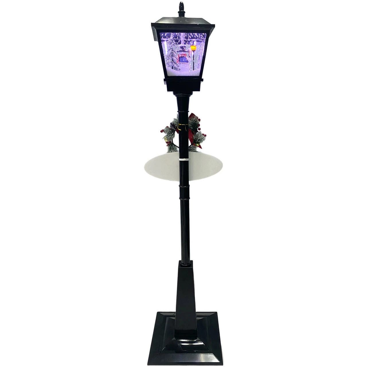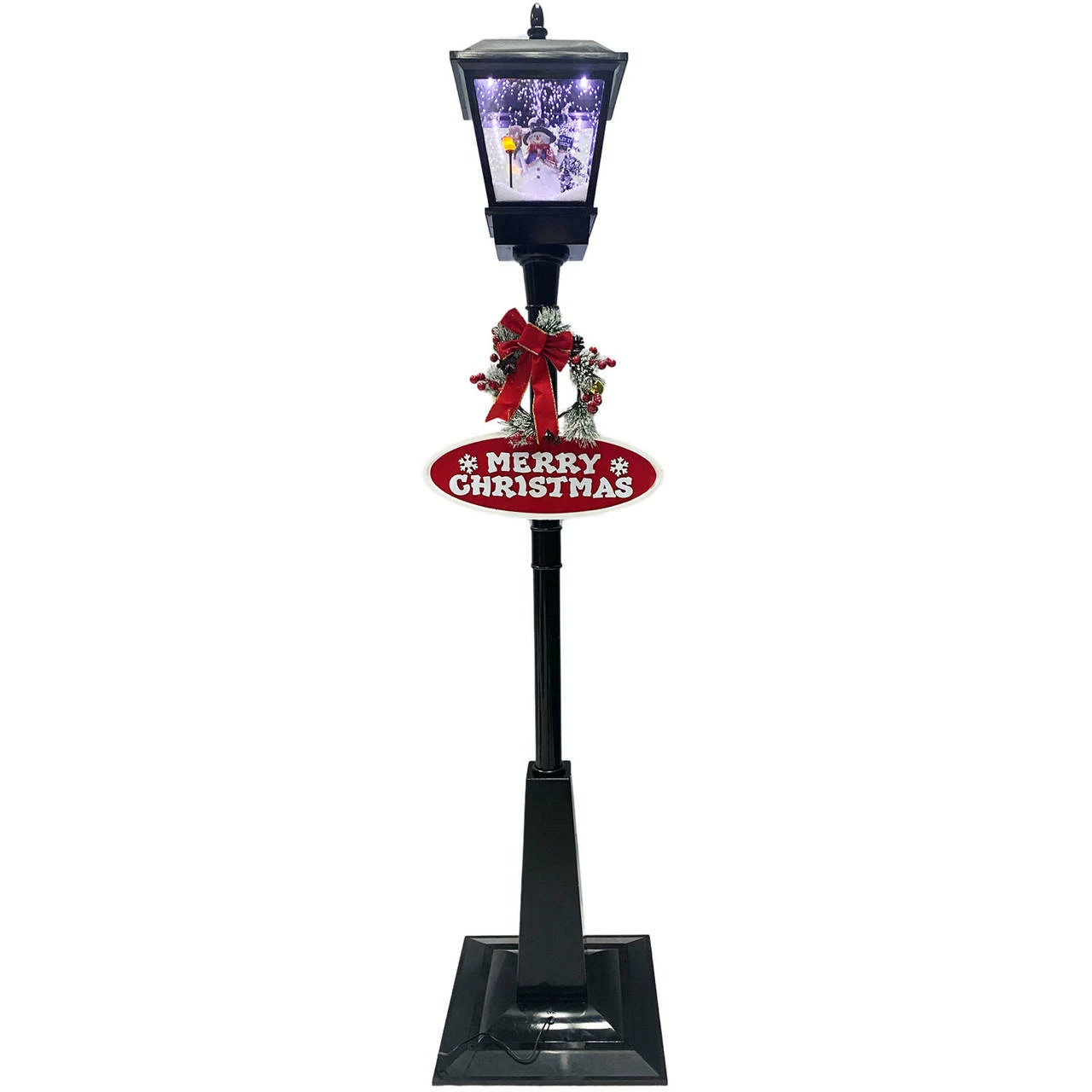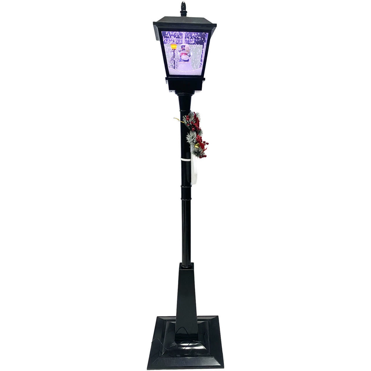 Greet your guests with this musical street lamp from Fraser Hill Farm’s Let It Snow series, where all products produce flurries of faux snow that fall over a variety of holiday scenes. Watch as brightly lit snow cascades over a snowman scene while your favorite Christmas Carols play in the background. Sing along to 25 family favorites such as Jolly Old Saint Nicholas, The Twelve Days of Christmas, Joy to the World, and many more. The magic of the holidays is truly embodied in this decorative lamp post. With two festive signs, a berry-covered wreath, and a classic red bow, this unique holiday street lamp will help create a magical winter wonderland on your covered porch, walkway, or driveway. Simply plug it in and let it snow, let it snow, let it snow!