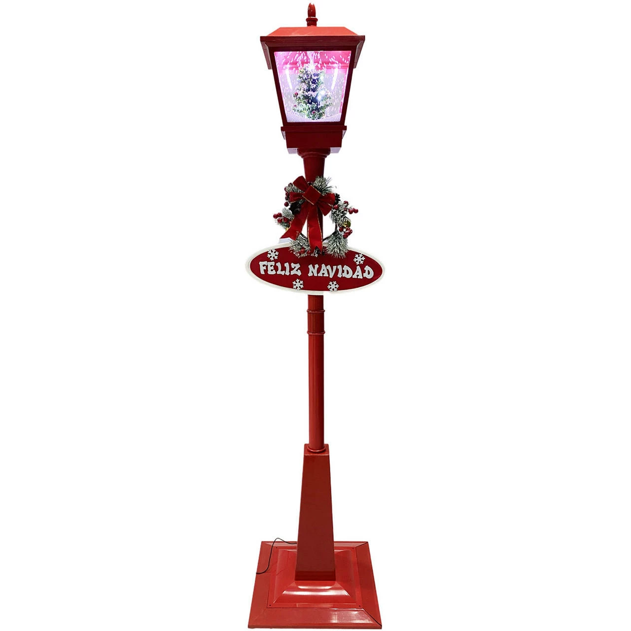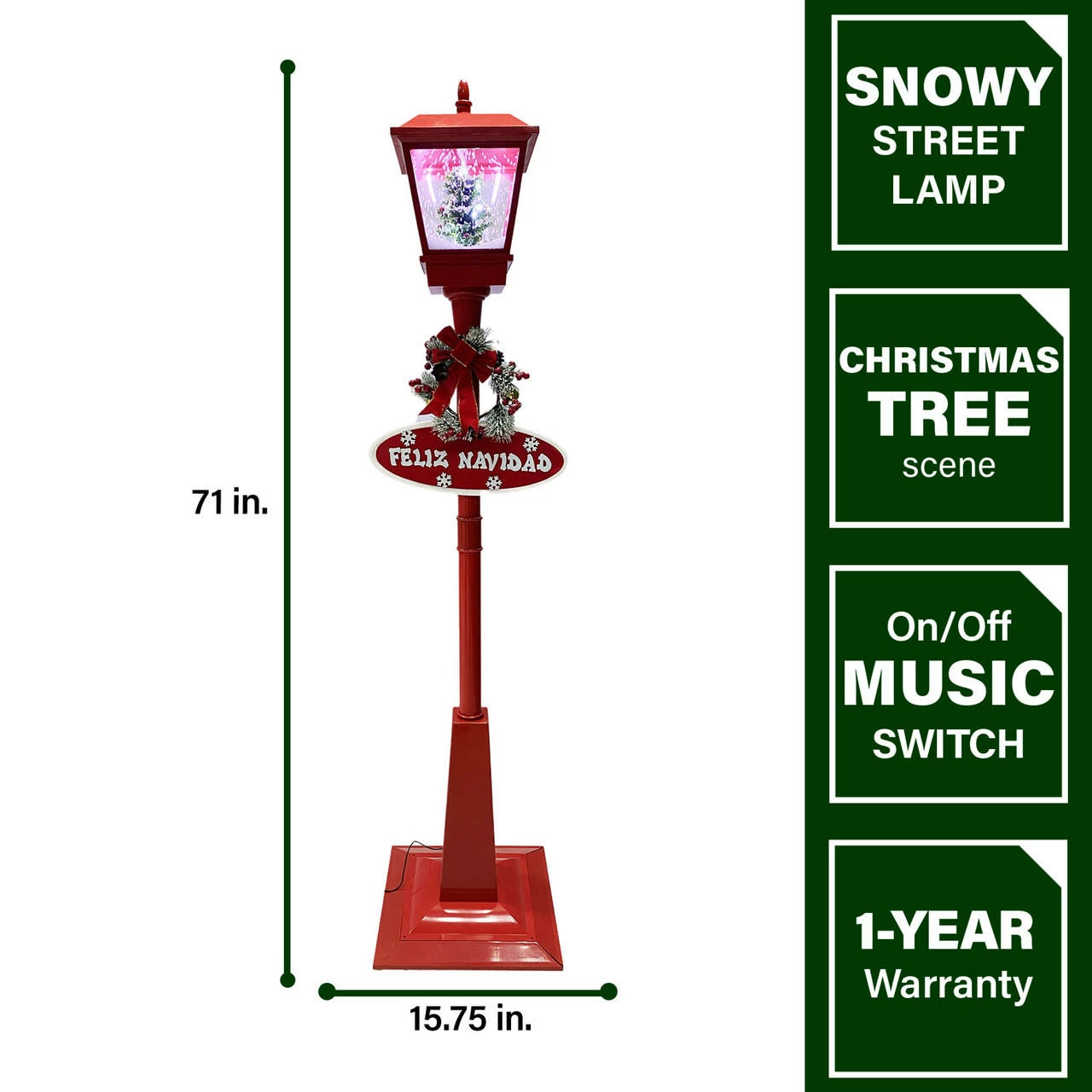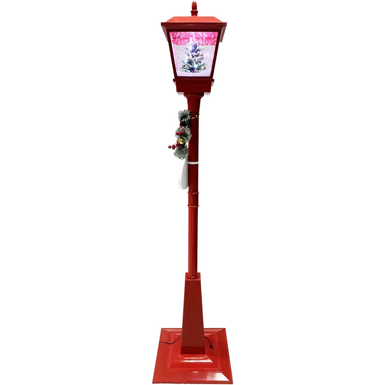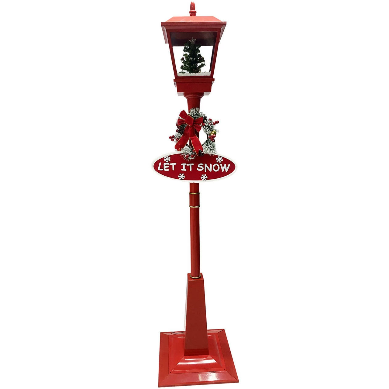 Greet your guests with this musical street lamp from Fraser Hill Farm’s Let It Snow series, where all products produce flurries of faux snow that fall over a variety of holiday scenes. Watch as brightly lit snow cascades over a Christmas tree scene while your favorite Christmas Carols play in the background. Sing along to 25 family favorites such as Jolly Old Saint Nicholas, The Twelve Days of Christmas, Joy to the World, and many more. The magic of the holidays is truly embodied in this decorative lamp post. With two festive signs, a berry-covered wreath, and a classic red bow, this unique holiday street lamp will help create a magical winter wonderland on your covered porch, walkway, or driveway. Simply plug it in and let it snow, let it snow, let it snow!
