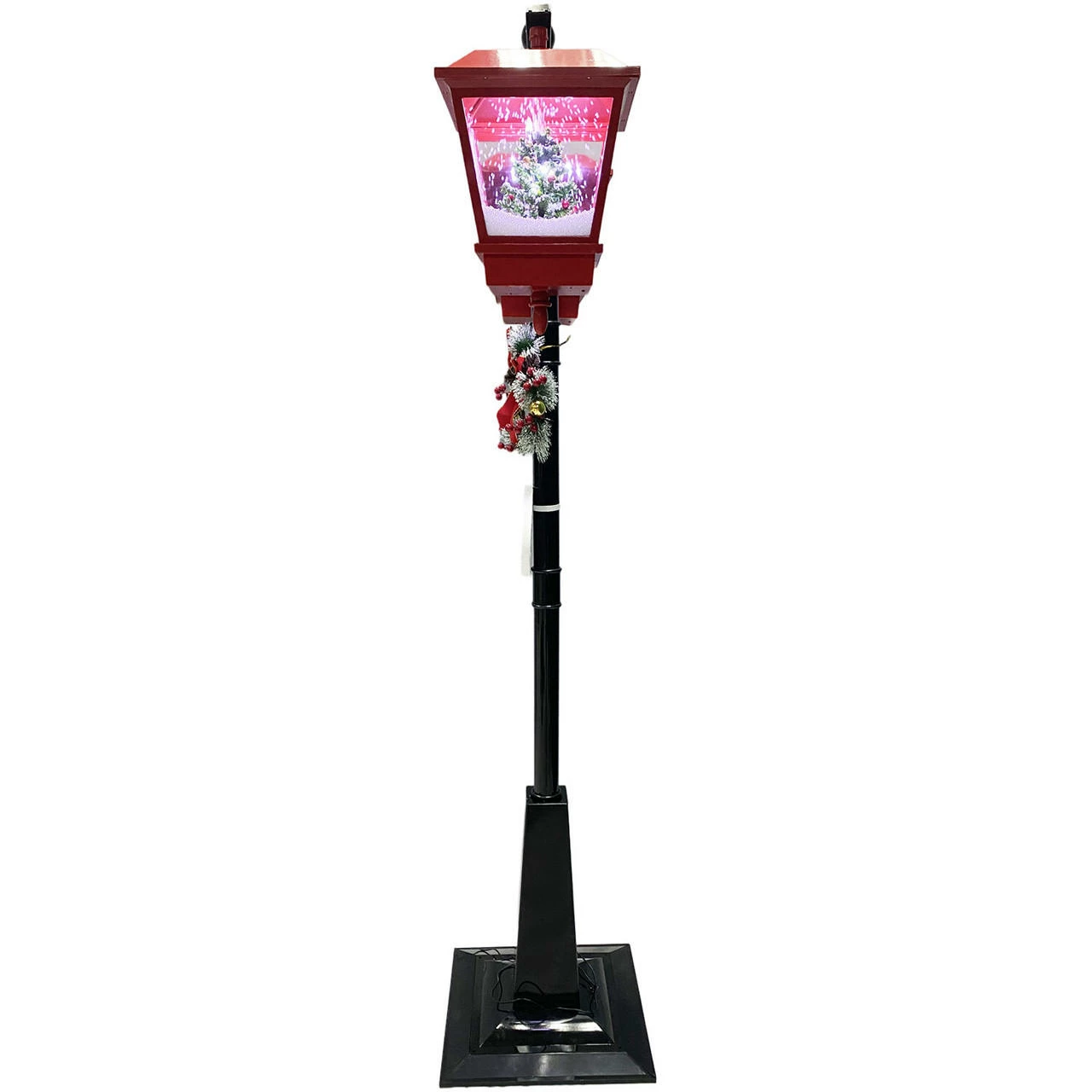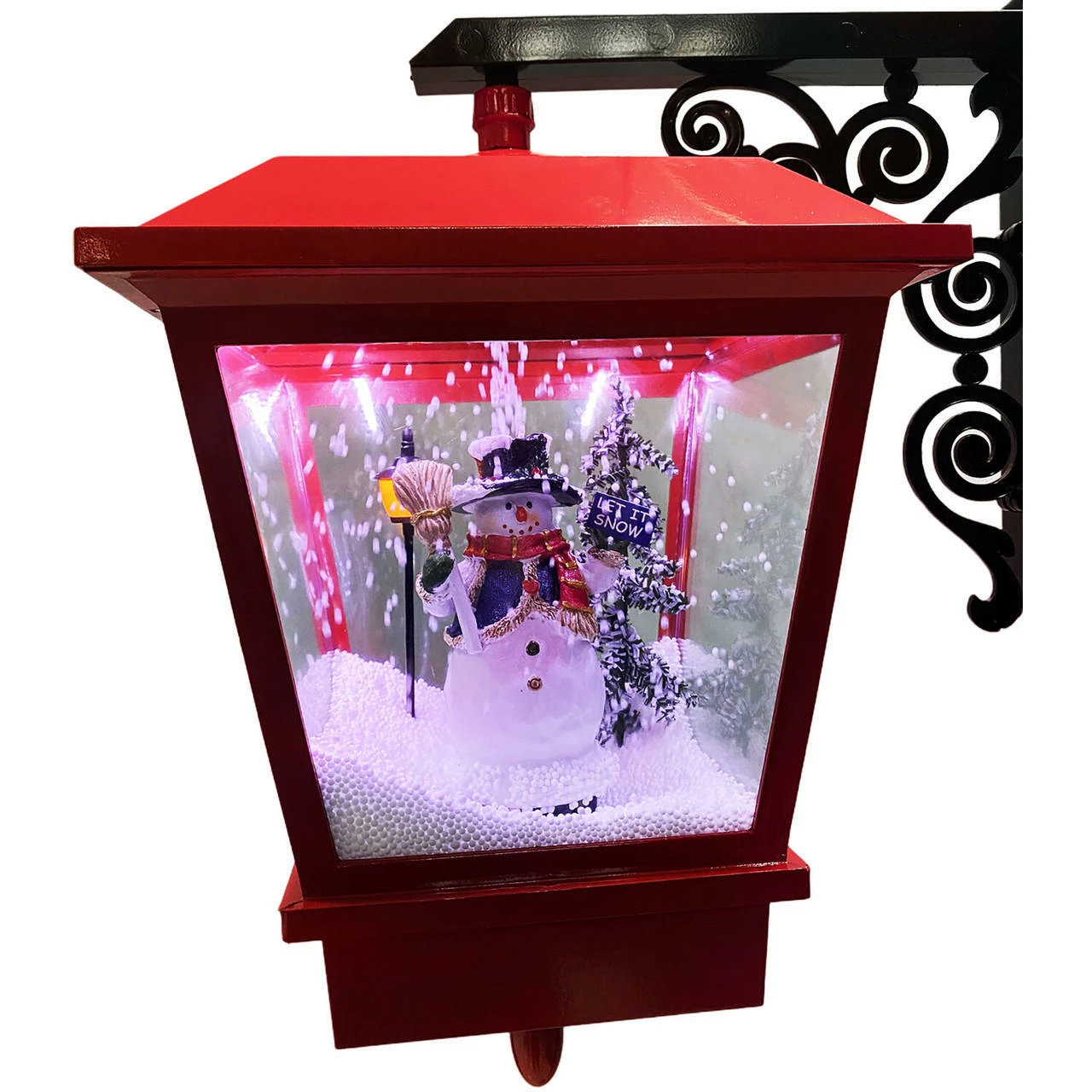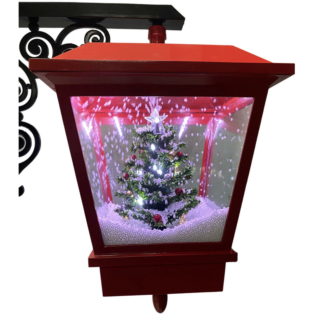 Light the night with our dual-lantern street lamp from Fraser Hill Farm’s Let It Snow series, where all products produce flurries of faux snow that fall over a variety of holiday scenes. This amazing holiday lamp post features two musical snow lanterns – one with a snowman scene and one with a Christmas tree scene. Snow dances playfully over each scene while your favorite Christmas Carols play, including 25 family favorites such as Jolly Old Saint Nicholas, The Twelve Days of Christmas, Joy to the World, and many more. Embellished with traditional scrollwork, a festive sign, a berry-covered wreath, and a classic red bow, this unique holiday street lamp will create a magical winter wonderland on your covered porch, walkway, or driveway. Simply plug it in and let it snow, let it snow, let it snow!
