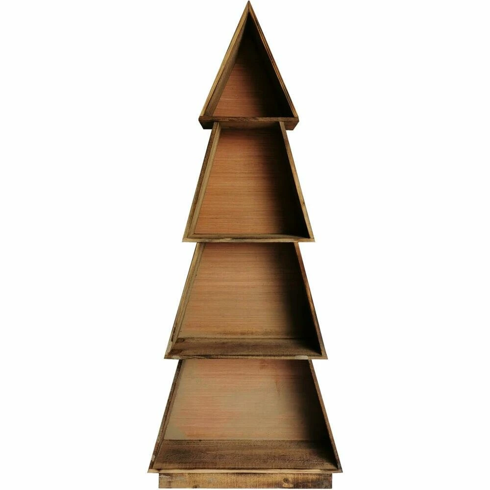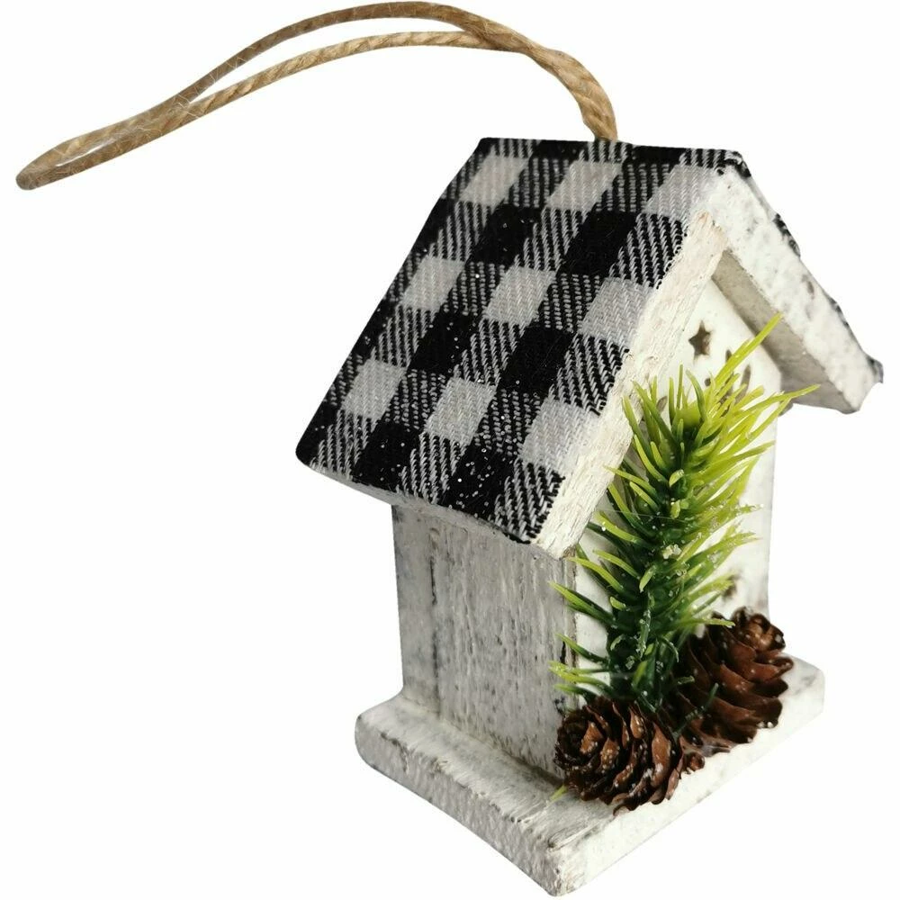 - Unique decor set includes a buffalo plaid Merry Christmas wall hanging, wooden train with snow accents, 46-inch wooden tree shelf, a birdhouse ornament, a moose lodge ornament, a metal snowman ornament, and a 28-inch pre-lit red barn