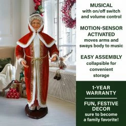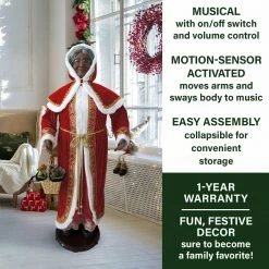 Fraser Hill Farm 58-In. Dancing African American Mrs. Claus W/ Hooded Cloak And Basket, Life-Size