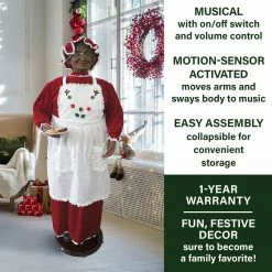 Fraser Hill Farm 58-In. Dancing African American Mrs. Claus With Apron And Cookies, Life-Sized