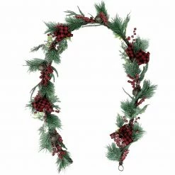 Fraser Hill Farm Frosted 24-in Wreath And 9-ft Garland Set W/ Red Berries, Plaid Bows, Rustic Bells