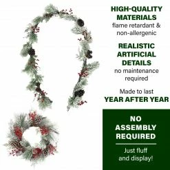 Fraser Hill Farm Frosted Pine 24-in. Wreath And 9-ft. Garland Set With Red Berries And Pinecones