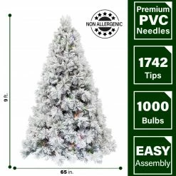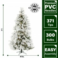 Fraser Hill Farm Snowy Pine Flocked Christmas Tree, Various Size (4 Ft. To 5 Ft.) Lighting Options