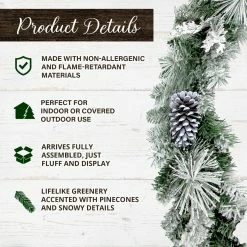 Fraser Hill Farm 9-Ft. Snow-Covered Decorative Garland – Frosted With Pinecones And Berries