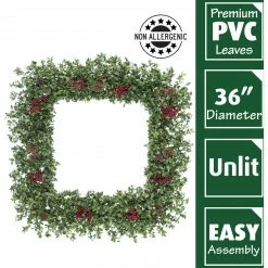 Fraser Hill Farm 48″ Evergreen Berry Green Oversized Square Wreath W/ Pine Cones And Berries